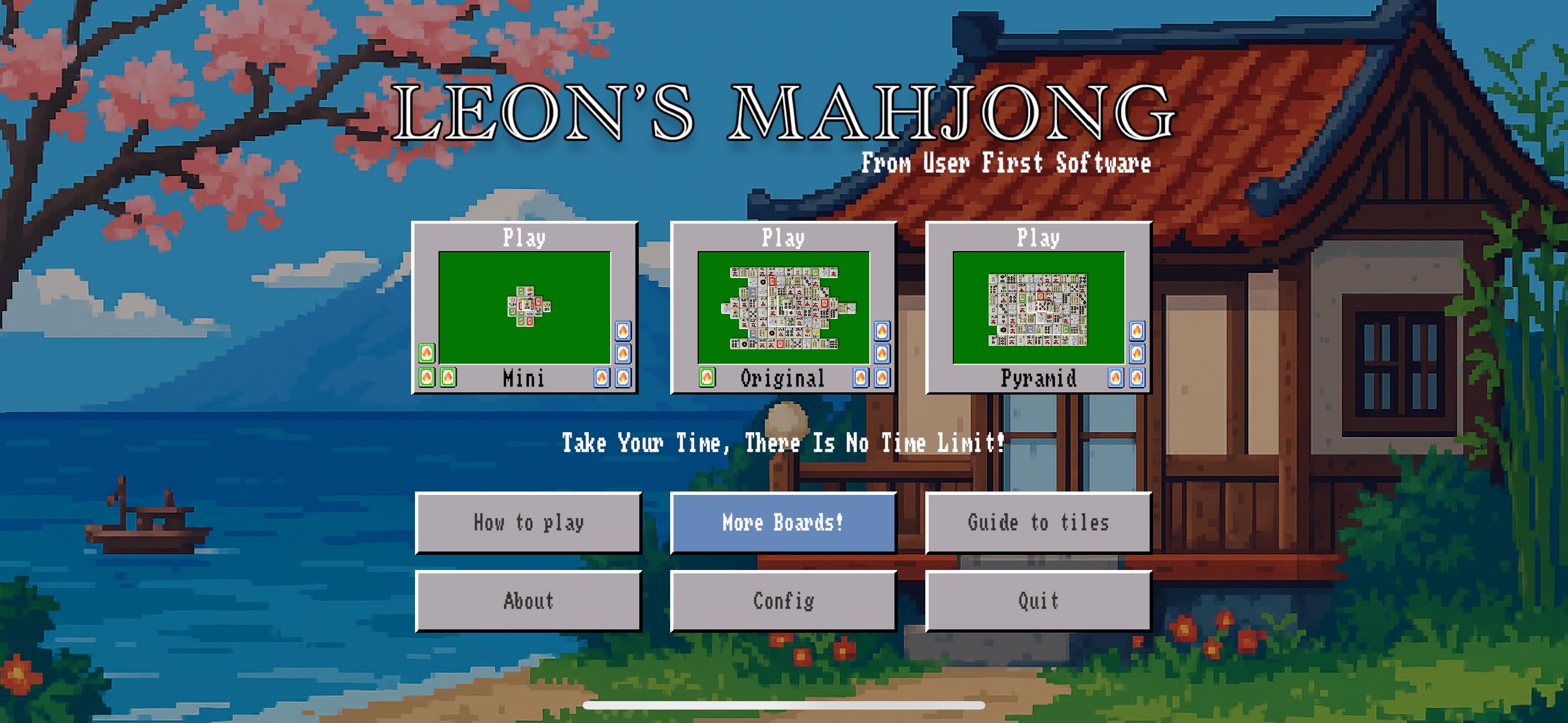 Leon's Mahjong is a retro-inspired Mahjong solitaire game that brings back the charm of classic 16-bit gaming. Designed with pixel-perfect graphics, it offers a nostalgic yet modern take on the traditional tile-matching puzzle game. Every board in Leon's Mahjong is 100% solvable, thanks to a custom algorithm that ensures players never get stuck with unsolvable configurations.
